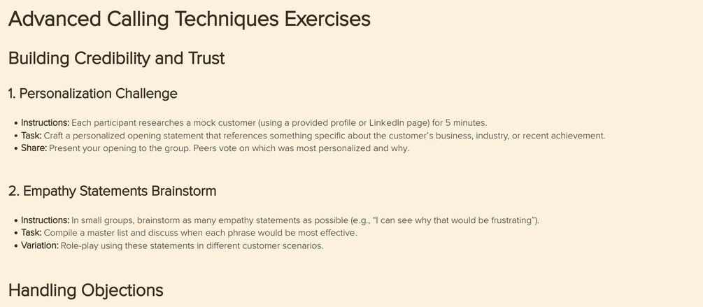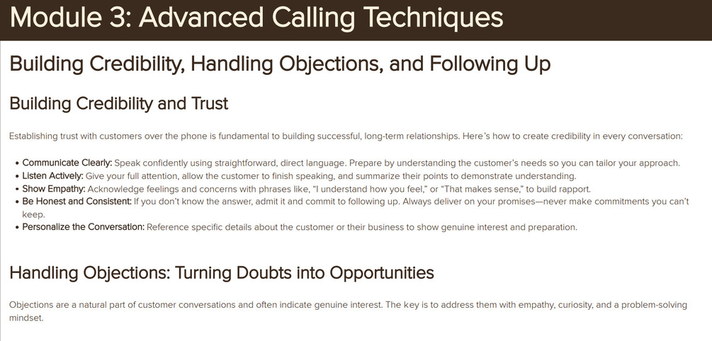 ✔️ Advanced Calling Techniques Framework – Build credibility, handle objections, and follow up for lasting relationships